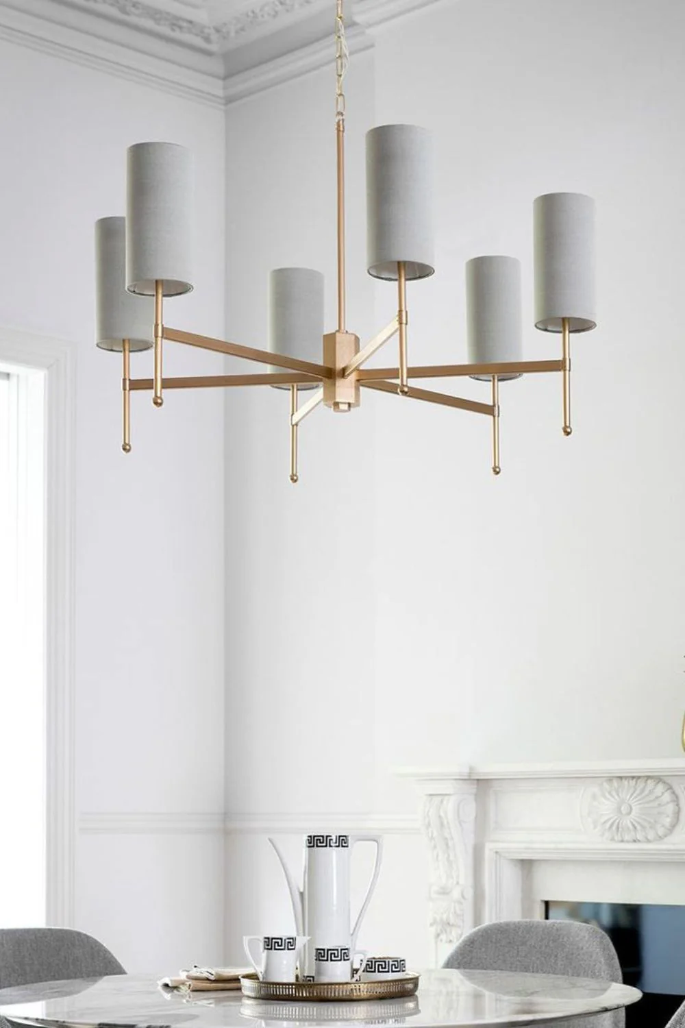 The Silk Stem Chandelier boasts a sophisticated metal stem frame, elevated by its exquisite hand-crafted design and a stunning silk shade.